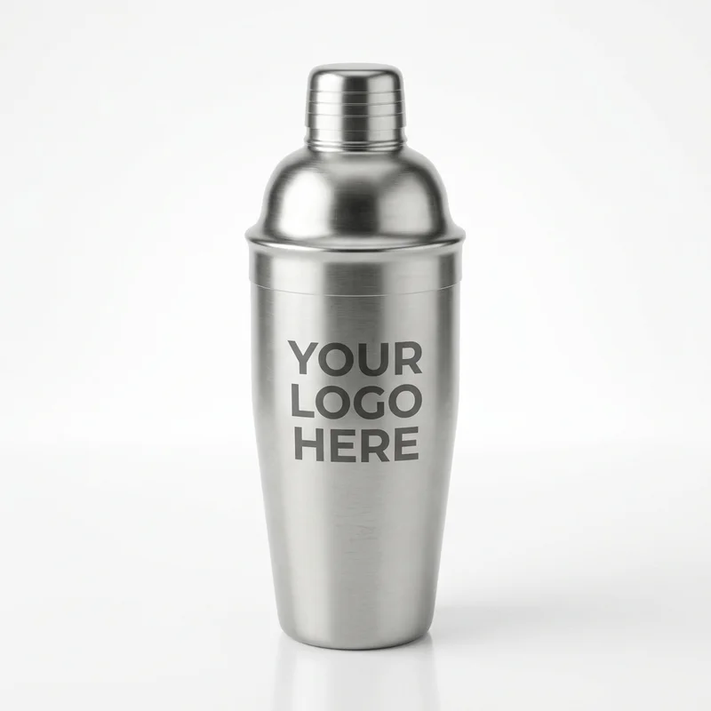 Elevate your mixology with this professional 3-piece stainless steel cocktail shaker. Features a built-in strainer and a sleek design for high-quality custom branding.