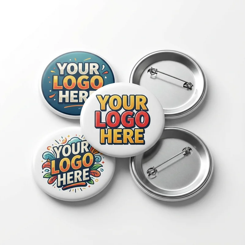 3-inch round button pins with safety pin backing and full-color printing. Large format creates bold statement pieces visible across rooms and crowds. Full-color printing displays detailed artwork, photographs, and intricate designs. The substantial size works for awards, recognition, and featured merchandise beyond basic promotional buttons. Protective mylar prevents fading and scratches during extended display.