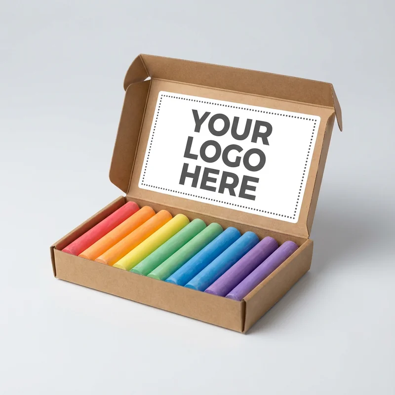 **Colored Chalk 12-Pack** Enhance your classroom, office, or event space with our dustless Colored Chalk 12-Pack. This set includes a variety of vibrant colors to help brighten up any project or presentation. The dustless formula ensures cleaner use, reducing the mess associated with traditional chalk. Priced at just $2.00 per pack, with a minimum order quantity of 200 packs, these chalks are a practical choice for bulk purchasing. They’re suitable for schools, training sessions, or promotional giveaways. Customize with your logo for a memorable touch.