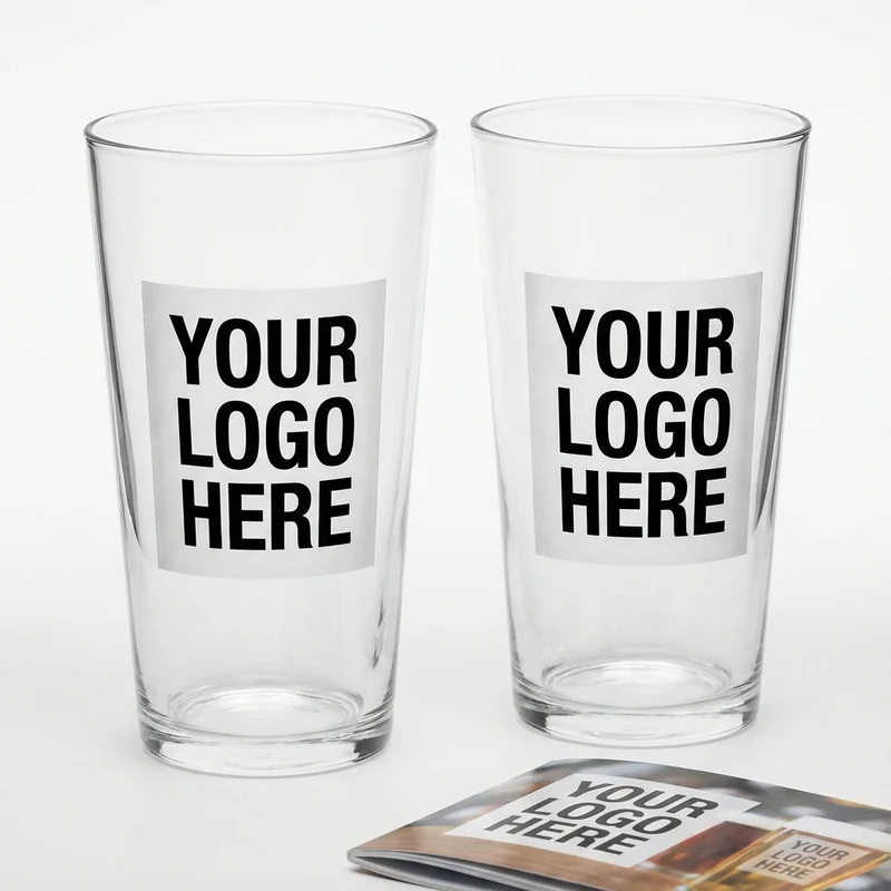Restaurant-grade pint glasses with custom branding. Perfect for breweries, bars, restaurants, and beer festivals. Available in standard pint, tulip, and nonic styles. Screen print or laser etching customization options. Dishwasher safe and commercial-grade durability. Classic 16oz capacity. Thick glass construction withstands heavy commercial use. Bulk pricing ideal for venue merchandising programs.
