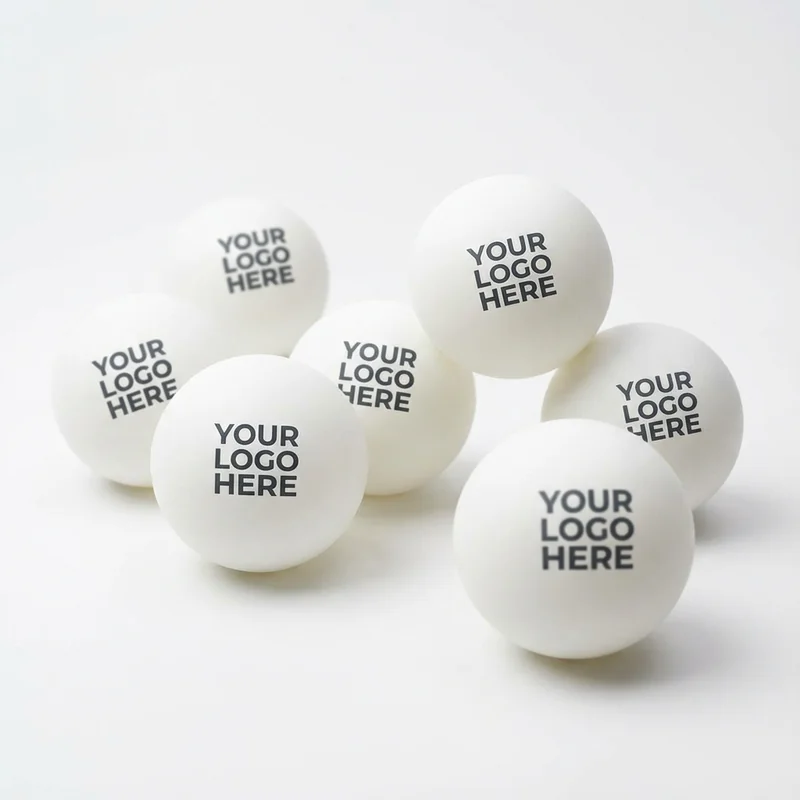 Custom printed ping pong balls in 1-star or 3-star quality with full-color pad printing. Official 40mm diameter meets regulation table tennis standards. 1-star balls suit recreational play and promotional use; 3-star balls meet competitive tournament standards. Full-color pad printing on one or both sides displays logos, text, or designs. Available in white or colored ball options. Celluloid or ABS plastic construction depending on shipping regulations.