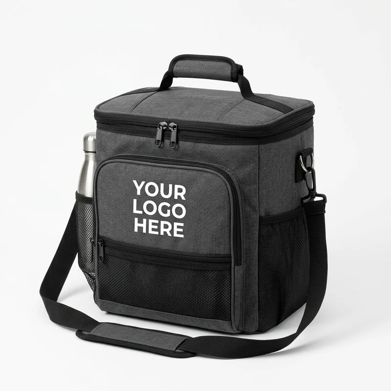 Keep your meals fresh and drinks chilled with the Summit Insulated 6-Can Cooler Bag. This compact, durable carrier features high-performance 420D polyester outer material and a heat-sealed, leak-resistant PEVA lining to lock in temperatures for hours. Perfect for company picnics, employee appreciation gifts, or outdoor events, this cooler includes a convenient front slip pocket, right side mesh storage, and an adjustable webbing shoulder strap for easy transport. Add your brand logo to the front pocket for a premium, custom-branded promotional item.
