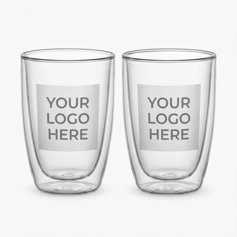 Enhance your drinkware collection with this Double-Wall Glass Set of 2, designed for both functionality and style. Each glass has a 12 oz capacity and is crafted from durable borosilicate glass, ensuring resistance to thermal shock and a sleek, modern appearance. The double-wall design keeps beverages hot or cold longer while preventing condensation on the exterior. This set is available for bulk orders starting at 50 units for $16.00 each. Customization options are available, allowing you to add your logo for a personal touch. Standard turnaround for orders is 10-14 days, making it a practical choice for corporate gifts or promotional events.