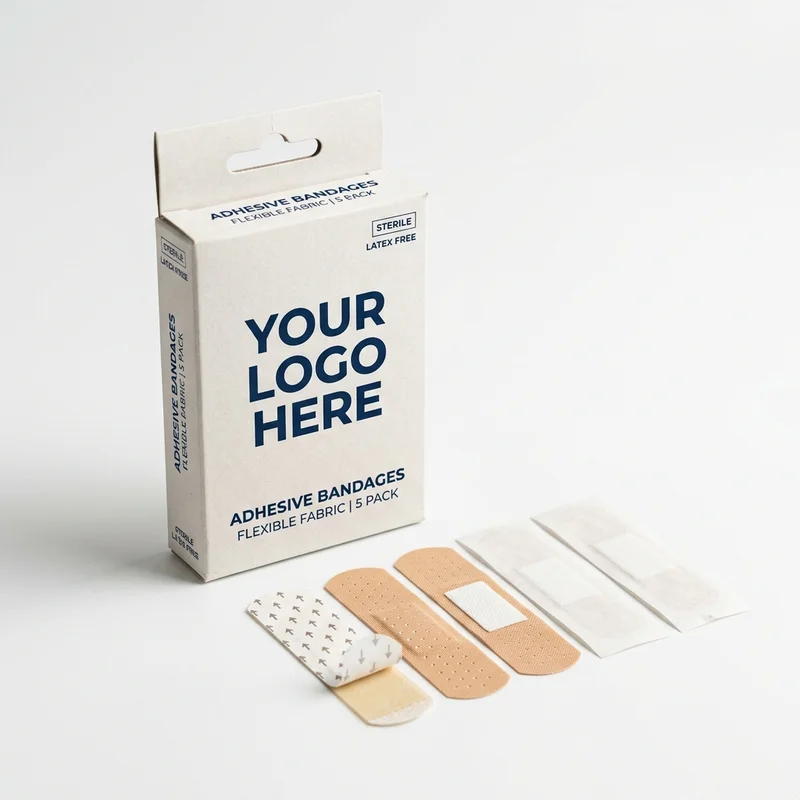 A compact zippered first aid kit pouch in vibrant red, containing essential supplies for minor injuries. Portable and perfect for travel, cars, and custom corporate safety branding.