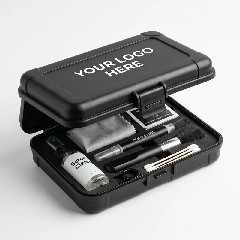 Neoprene tablet sleeve with soft microfiber lining and YKK zipper closure. 5mm shock-absorbing neoprene protects tablets from bumps and scratches. Fits most 10-11 inch tablets including iPad and Samsung Galaxy Tab. Water-resistant exterior handles light rain. A solid branded giveaway for tech companies, schools, corporate offices, and trade shows. Pair with custom laptop sticker skins for complete device branding.
