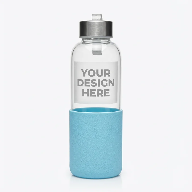 Stay hydrated with our 16oz Glass Water Bottle, designed for everyday use in the office or on the go. Made from durable borosilicate glass, this bottle offers a sleek look while ensuring your beverages remain at the ideal temperature. The silicone sleeve provides additional grip and protection, available in six attractive colors to suit your brand's aesthetic. With a minimum order quantity of 50, each bottle is competitively priced at $10.00. Customize with your logo for a practical promotional item that employees and clients will appreciate. Standard turnaround time is 10-14 days for orders.