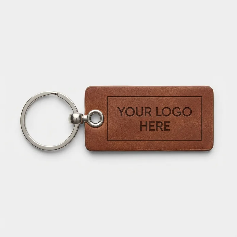 **Leather Keychain** Enhance your branding with our genuine leather keychain, available in five classic colors. The durable metal hardware ensures longevity and a polished look, making this a practical accessory for everyday use. Priced at $3.00 each, with a minimum order of 150 units, these keychains are suitable for corporate gifts, promotional giveaways, or employee incentives. Customize with your logo for a professional touch. Standard production time is 10-14 days.