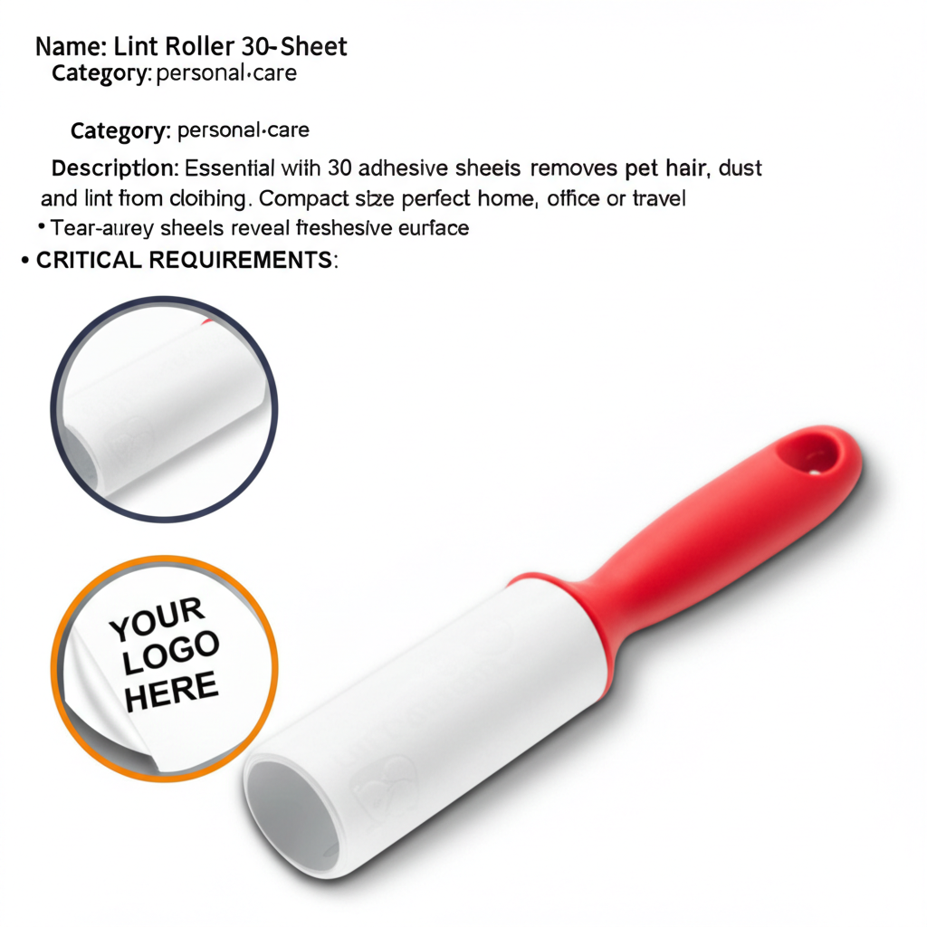 Compact lint roller with 30 adhesive sheets perfect for quick clothing touch-ups. Ideal for dry cleaners, hotels, corporate travel programs, and professional service promotions. Features customizable handle sleeve with large branding area. Portable size fits in bags, desks, and car consoles. Refillable design for long-term use. Perfect for travel kits, real estate closing gifts, and hospitality amenities.