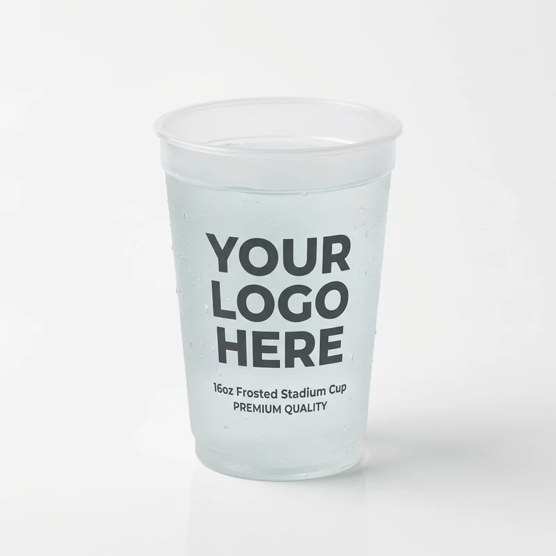 Fun and compact 8oz orange plastic stadium cup. Perfect for kids events, tastings, and unique promotional giveaways.