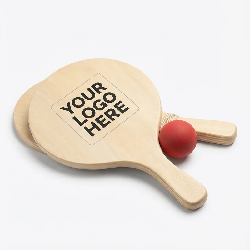 Paddle Ball Set designed for outdoor enjoyment. This set includes two wooden paddles and a ball, making it a straightforward addition to any outdoor event or team-building activity. The durable wood construction ensures longevity even with regular use. Priced at $5.00 per set, with a minimum order quantity of 150, this product is suitable for bulk purchases. Custom branding options are available to enhance your company’s visibility during outdoor gatherings and corporate picnics. Standard production time is 10-14 days.