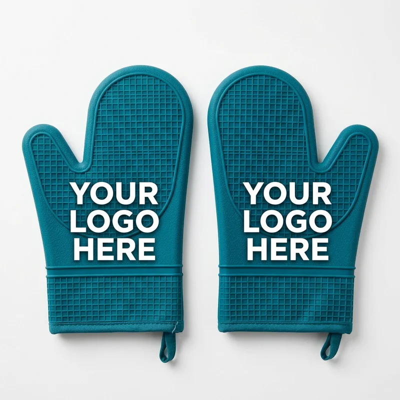Silicone oven mitts or hot pads rated to 450 degrees F. Available as a pair of mitts or a set of 2 pads. Large decoration area for screen printing or heat transfer customization. Kitchen brands, appliance companies, cooking events, and home goods promotions order these. They are a practical kitchen item people use daily, and the silicone material lasts longer than fabric alternatives at high temperatures.