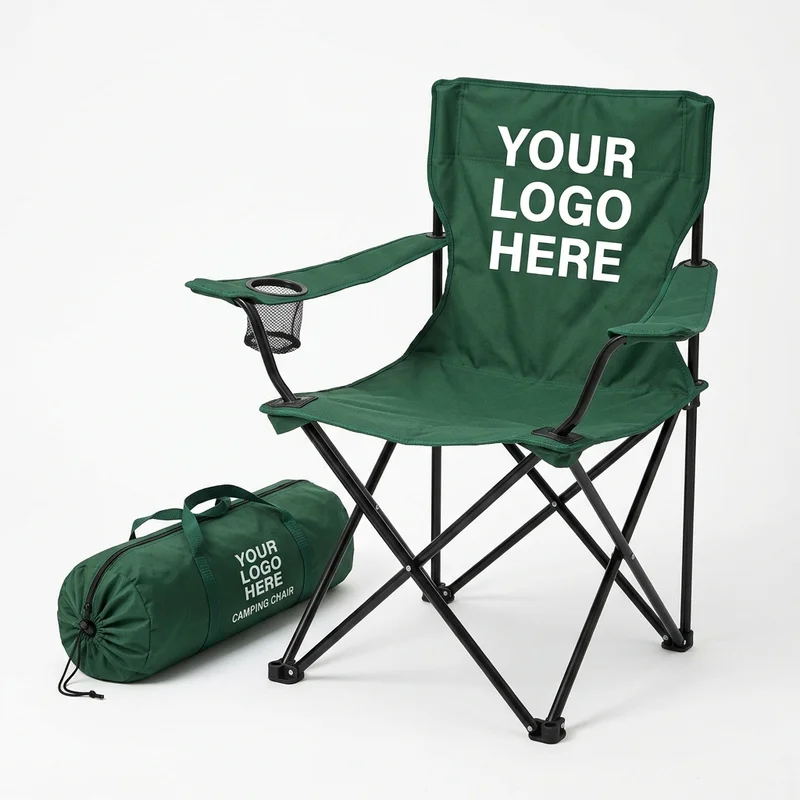 Comfortable and portable foldable camping chair in forest green. Comes with a carrying bag, perfect for outdoor events and premium custom corporate branding.
