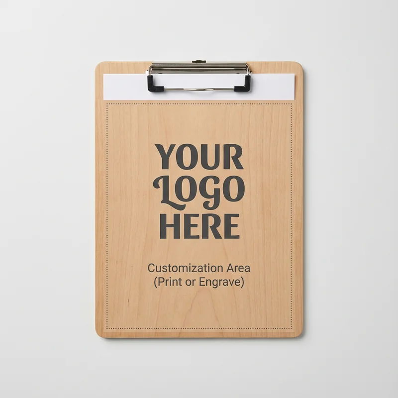 Stay organized with our Letter Size Clipboard. Made from durable hardboard, this clipboard securely holds documents sized 8.5"x11". The sturdy metal clip ensures your papers stay in place, making it a reliable tool for meetings, presentations, or everyday office tasks. Available in five colors, this clipboard can easily match your company's branding. Priced at $5.00 each, bulk orders start at a minimum quantity of 100 units, making it an economical option for any business. Customization options are available to add your logo, enhancing your professional image.