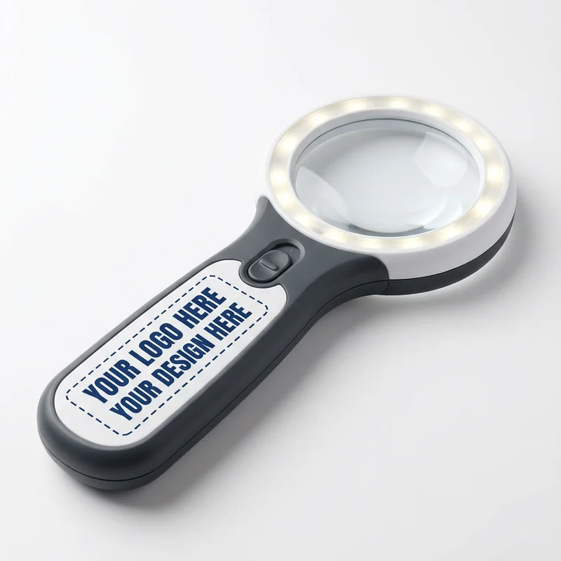 Enhance your office toolkit with the LED Magnifying Glass, featuring a built-in LED light and 3x magnification. This practical tool is designed to assist with detailed tasks, making it a valuable addition to any workspace. Priced at $8.00 each with a minimum order of 100 units, it’s a cost-effective solution for corporate giveaways or employee use. Customize with your logo for a professional touch. Standard production time is 10-14 days.