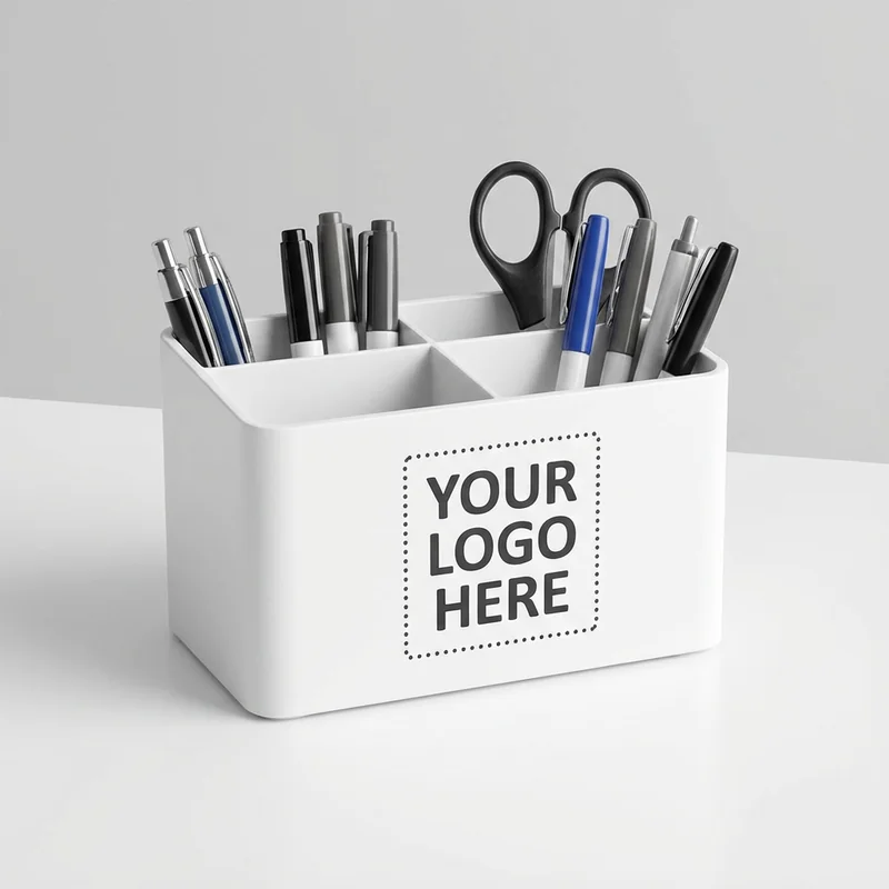 Organize your workspace with our Desk Pen Holder, designed for efficiency and functionality. Made from durable plastic, this holder features four compartments to keep pens, pencils, and other office supplies neatly arranged. Its modern design fits seamlessly into any office environment. Priced at $6.00 each, with a minimum order of 100 units, this desk accessory is not only practical but also budget-friendly. Customize it with your logo to enhance brand visibility in your workplace or during corporate events. Standard turnaround time is 10-14 days for orders.