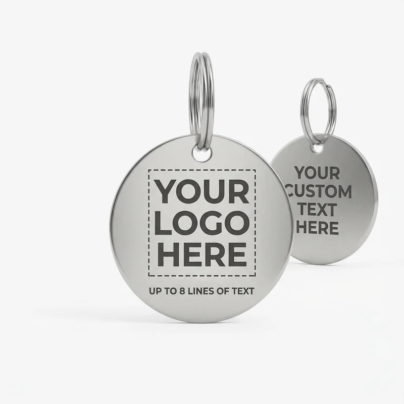 **Pet ID Tag Engraved** Ensure your clients’ pets are safe and easily identifiable with our stainless steel Pet ID Tag. This durable tag features two-sided engraving, allowing for clear and concise information about the pet and owner. With a sleek design and robust material, it withstands daily wear and tear. Available for bulk orders starting at just $3.00 each, with a minimum quantity of 150. Customize with your logo or design to create a practical promotional item that resonates with pet owners. Standard production time is 10-14 days.