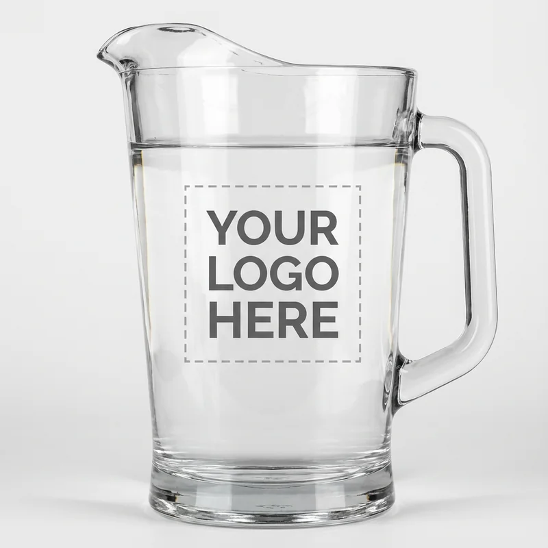 **Glass Pitcher 64oz** This 64 oz glass pitcher is designed for both functionality and style. Featuring a convenient pour spout, it makes serving beverages effortless, whether in the office or at corporate events. The durable glass material not only enhances the presentation but also ensures longevity. Offered at $18.00 each with a minimum order of 25 units, this pitcher is a practical addition to your drinkware collection. Customize with your logo to create a cohesive look for meetings, receptions, or promotional giveaways. Standard turnaround time is 10-14 days.