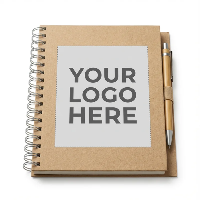 **Recycled Paper Notebook** Stay eco-conscious with our Recycled Paper Notebook, designed for businesses that prioritize sustainability. The cover is made from recycled cardboard, while the 70 pages are crafted from 100% recycled paper, making it a practical choice for meetings, brainstorming sessions, or note-taking. Available at just $4.00 per unit, with a minimum order of 100 notebooks. Custom branding options are available to showcase your company logo, making this notebook a functional promotional item that supports your green initiatives. Standard production time is 10-14 days.