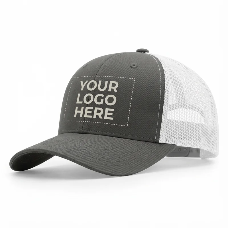 The industry-standard Richardson 112 trucker cap. Features structured cotton front with polyester mesh back. Adjustable plastic snap closure. The gold standard in promotional headwear.
