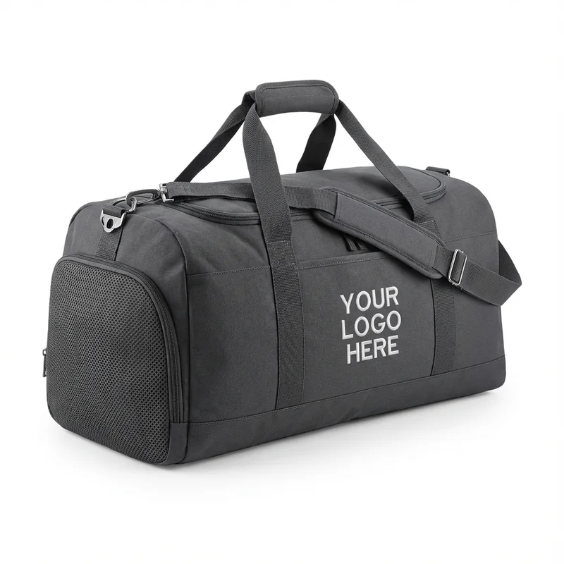 Athletic teams, gyms, sports camps, and corporate fitness programs order branded duffels for team unity and equipment organization. The ventilated shoe pocket prevents odor transfer to clean gear—critical feature parents appreciate. More specialized than generic gym bags with sport-specific features like ventilation. The large capacity holds full uniforms, protective equipment, and accessories in single bag. Works with water bottles, sports towels, and athletic gear for complete athlete packages. Popular for team orders, athletic fundraisers, sponsor branding, and employee appreciation for active lifestyles.