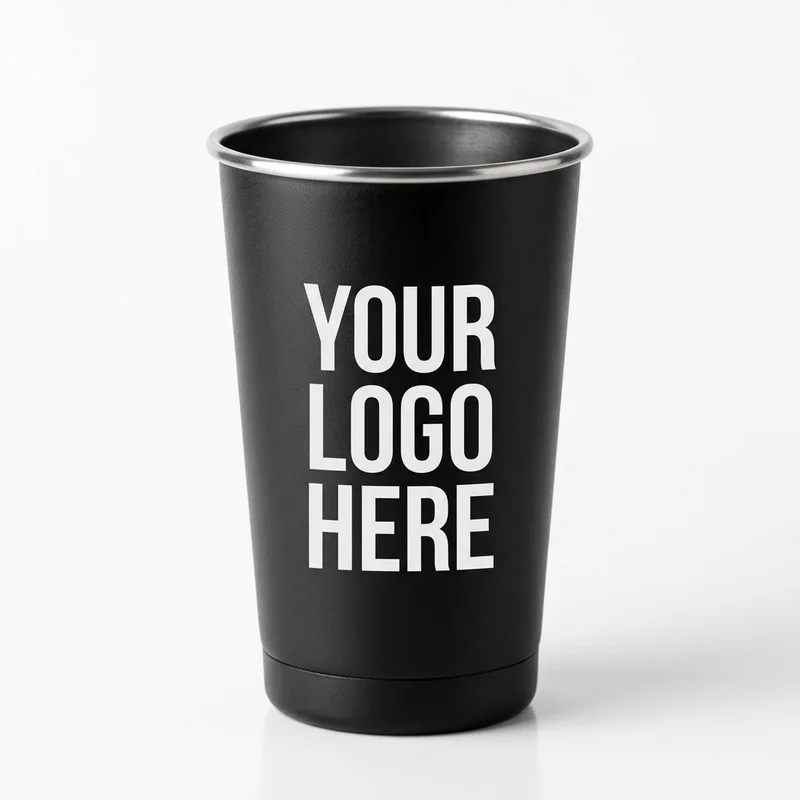 Durable and classic. This 16oz matte black stainless steel pint cup is the unbreakable choice for outdoor events and high-quality custom branding.