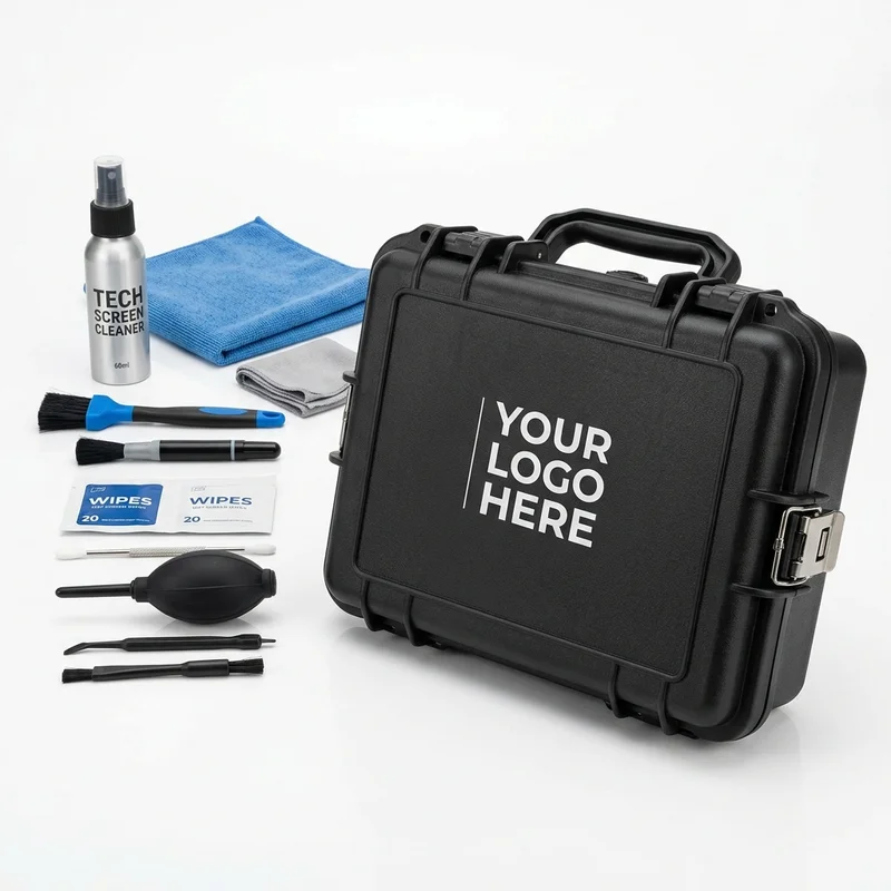 Neoprene tablet sleeve with soft microfiber lining and YKK zipper closure. 5mm shock-absorbing neoprene protects tablets from bumps and scratches. Fits most 10-11 inch tablets including iPad and Samsung Galaxy Tab. Water-resistant exterior handles light rain. A solid branded giveaway for tech companies, schools, corporate offices, and trade shows. Pair with custom laptop sticker skins for complete device branding.