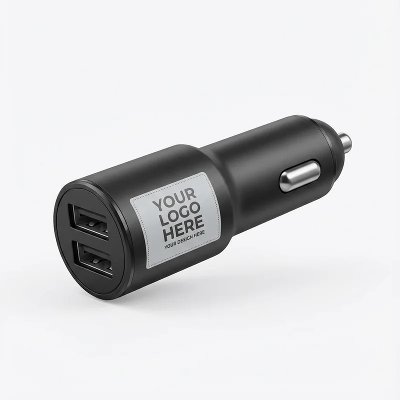 **Dual USB Car Charger** Keep your team connected on the go with our Dual USB Car Charger. Featuring two USB ports with a total output of 3.1A, this charger allows simultaneous charging of multiple devices, making it a practical accessory for busy professionals. Available in five colors to match your brand's style. Priced at $6.00 each with a minimum order of 100 units, this product is a cost-effective solution for corporate gifts or promotional giveaways. Customize it with your logo for added visibility during company events or in client meetings. Standard production time is 10-14 days.